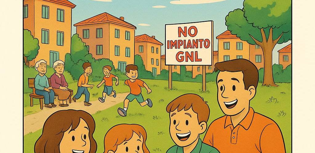 Il racconto parte da una scena serena di vita quotidiana: bambini che giocano, anziani che chiacchierano, famiglie riunite in un quartiere che è descritto come “un angolo di paradiso”. L’annuncio dell’impianto di liquefazione del gas naturale a 150 metri dalle case rompe l’equilibrio e getta i cittadini nello sconcerto. Ma la favola non si chiude in toni cupi: al contrario, i protagonisti si uniscono, si informano, scrivono appelli e ricorsi. Alla fine, come nelle migliori storie, vince la comunità, e l’azienda stessa ritira il progetto, riconoscendo la forza e la ragione della cittadinanza.
