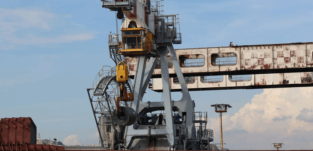 Nella foto, una gru dei moli delle acciaierie di Cornigliano