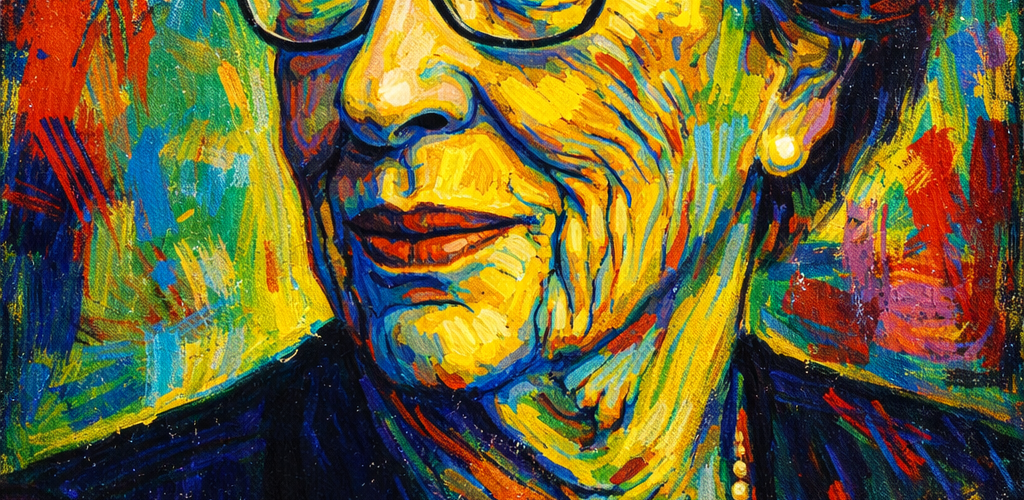 Ritratto in AI e pittura digitale di Eva Schloss
