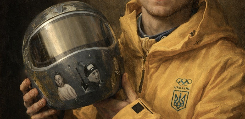 Nella foto, l’opera in AI e grafica digitale di Roberto Malini (EveryOne Group e Watching the Sky) Vladyslav Heraskevyč, vero vincitore dei Giochi olimpici invernali 2026